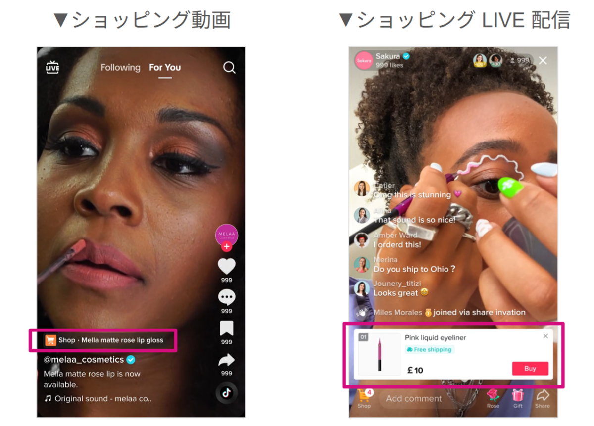 TikTok Shop とは、TikTok アプリ上で商品の「発見」から「購入」までをスムーズにできる EC 機能です。ユーザーが TikTok アプリ上でショート動画やライブ配信を観ながら、アプリ上で商品を直接購入できる「ディスカバリー E コマース」ができる点が特徴といえます。