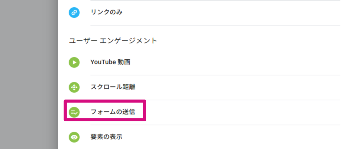 「フォームの送信」は、その名の通りフォームを送信した際にタグが発火するトリガーです。