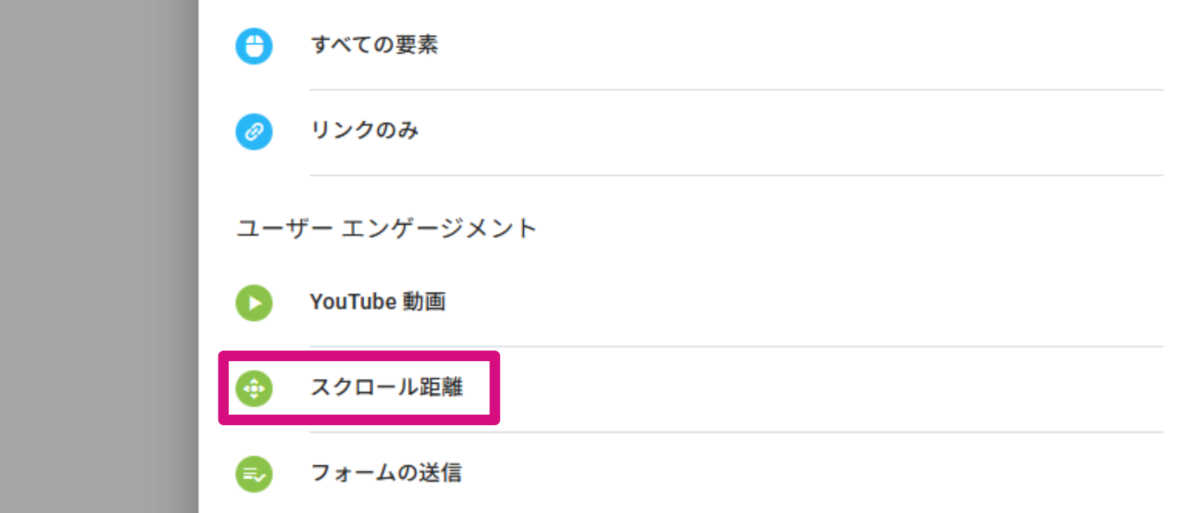 GTM 上で設定するときは、まず「トリガーのタイプ」で「スクロール距離」を選択します。