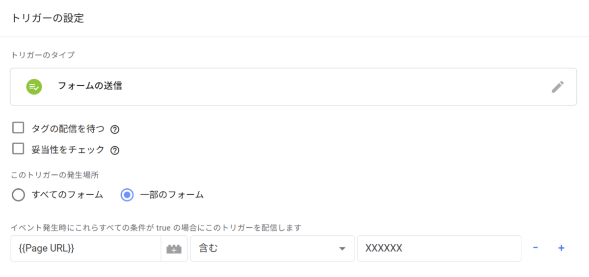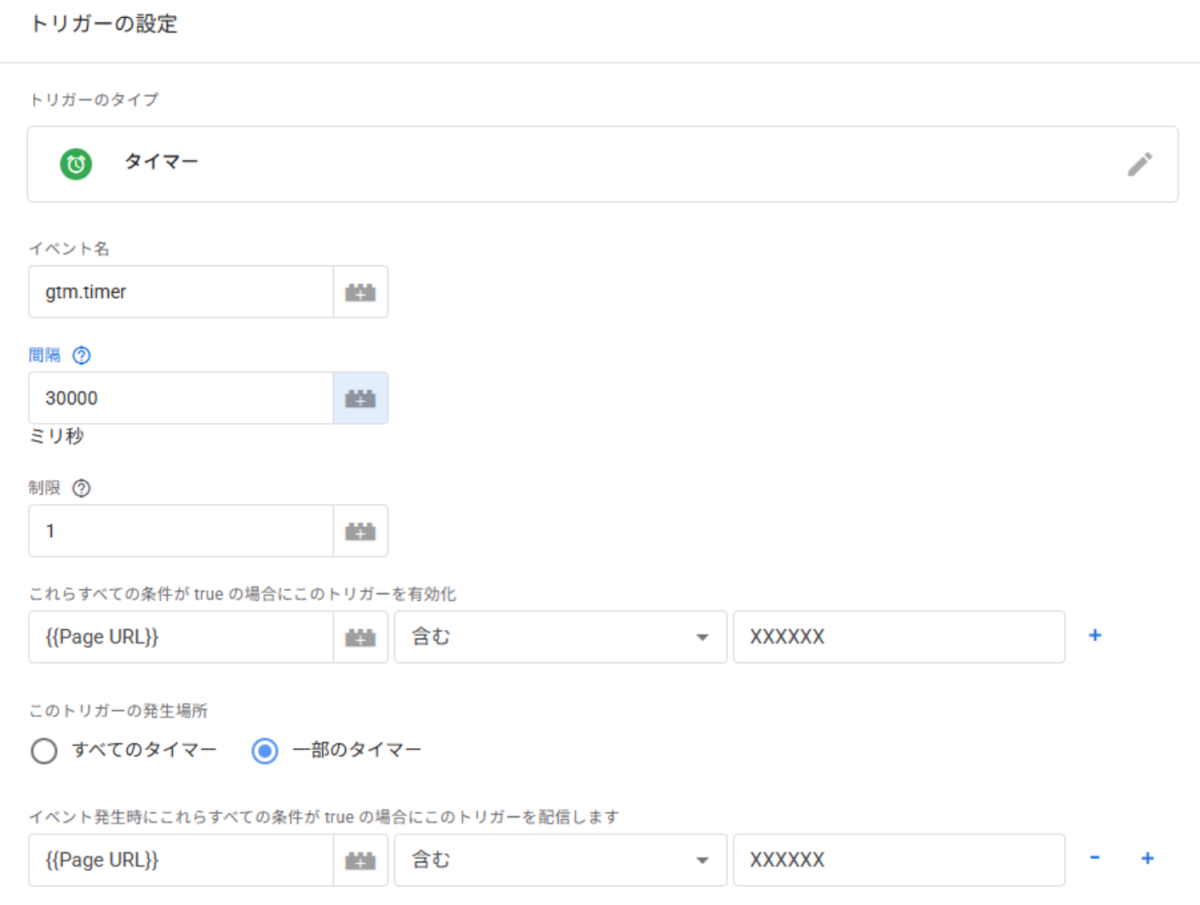 | トリガーの有効化:値 | XXXXXX(計測したいページ URL) |