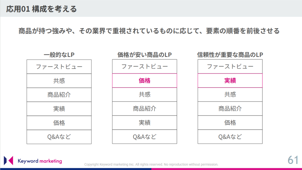 また、LP の構成には「正解」がないため、一通りの改善が終わったあとは、様々な順番を試してみて成果を比べてみましょう。