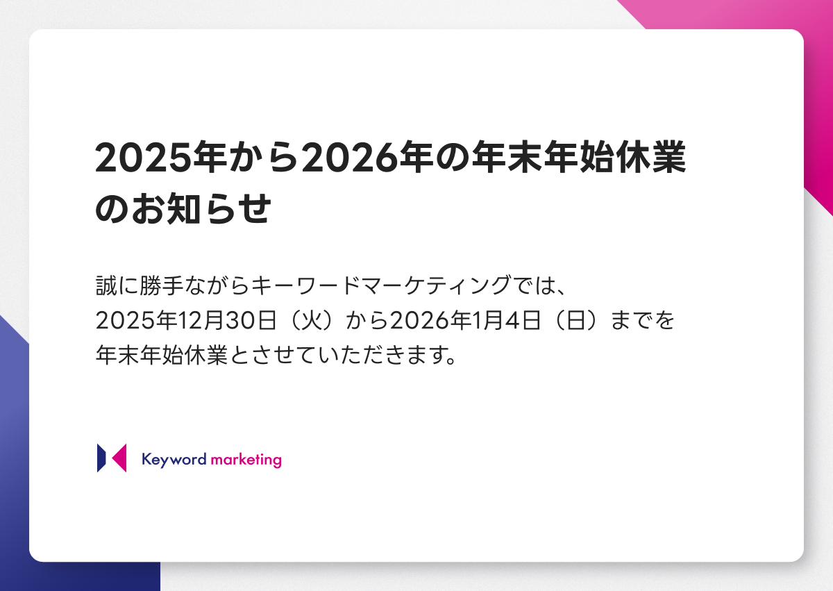 2025年年末から2026年年始にかけての休業に関するご案内です。